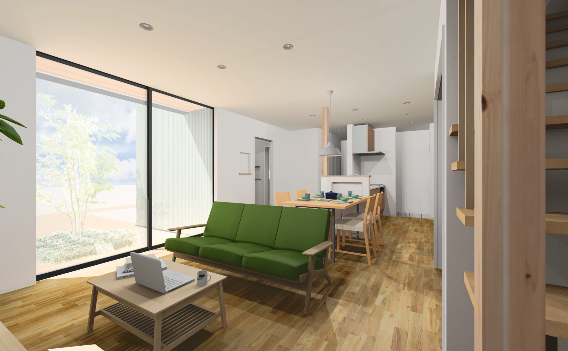 家族のくつろぎスペースのリビングは無垢材にナチュラルインテリア