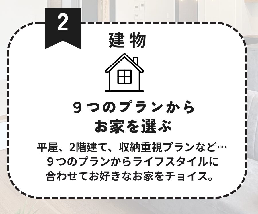 平屋を含む9つのプランをご用意してお待ちしております