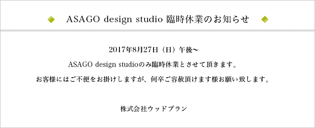 8/27(日)午後〜朝来スタジオのみ臨時休業