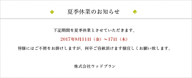 夏季休業のお知らせ
