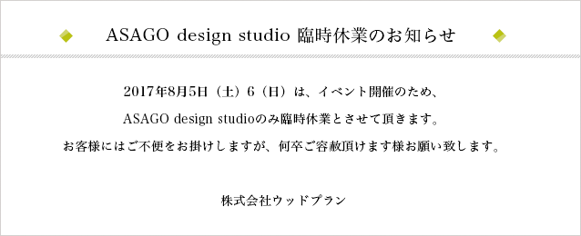 8/5(土)6(日) 朝来スタジオのみ臨時休業