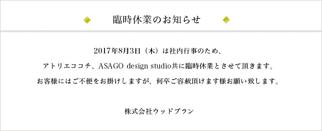 8/3 社内行事の為臨時休業となります