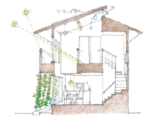 エアコンよりも、窓からそよぐ風やお日様の暖かさが好きという自然派ライフスタイルの方の為に生まれたプランです。季節による陽の高さや角度を考慮し、吹き抜けを通して室内空間の循環を自然と行えるプランです。日本人に生まれたことへの喜びを味わえる家とも言えます。四季の移ろいを楽しみ、自然の恩恵を存分に感じる、まさに地球と共生する暮らしが実現します。